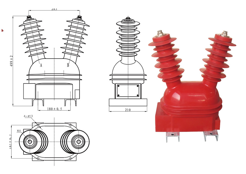 產品說明:JDZW2-10R 型電壓互感器適用于額定頻率50HZ, 額定電壓為 10KV 及以下的交流線路中,為單相戶外互感器,作為戶外柱上開關配套使用。